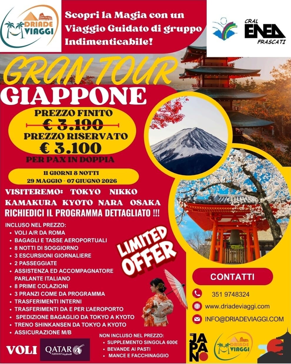 Per richiedere preventivi individuali, informazioni sulle partenze di gruppo e ulteriori informazioni relative alla Convenzione in corso 2025. Contattateci via email inserendo il vostro indirizzo, specificando la vostra richiesta: