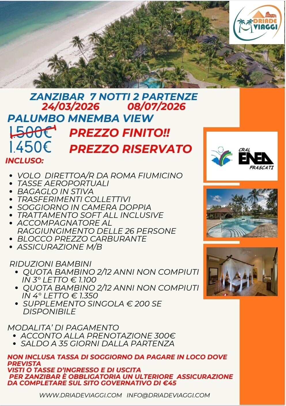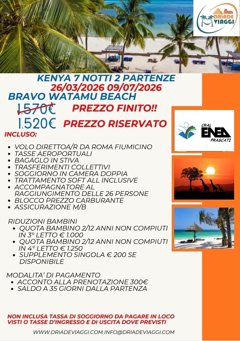 Richiedici i dettagli delle Convenzioni qualora non li avessi ancora ricevutiinviandoci una mail a info@driadeviaggi.com o compilando il modulo in basso